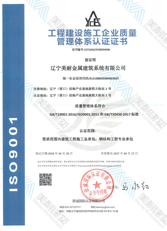 美耐以高品質全系自主產品與雄厚的專業(yè)實力為基礎,由8位高級工程師、20余名中級工程師、30余名初級工程師、6位國家注冊一級建造師、15位二級建造師等高端人才組成的精英團隊,融合近20 年豐富項目經驗與專業(yè)高效服務,為客戶提供金屬建筑一體化解決方案。